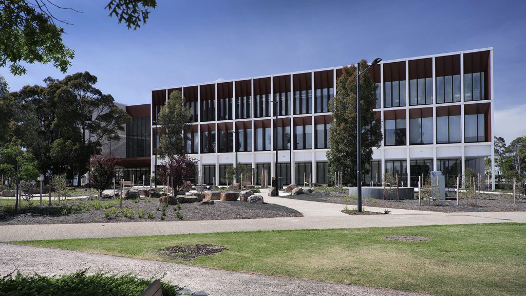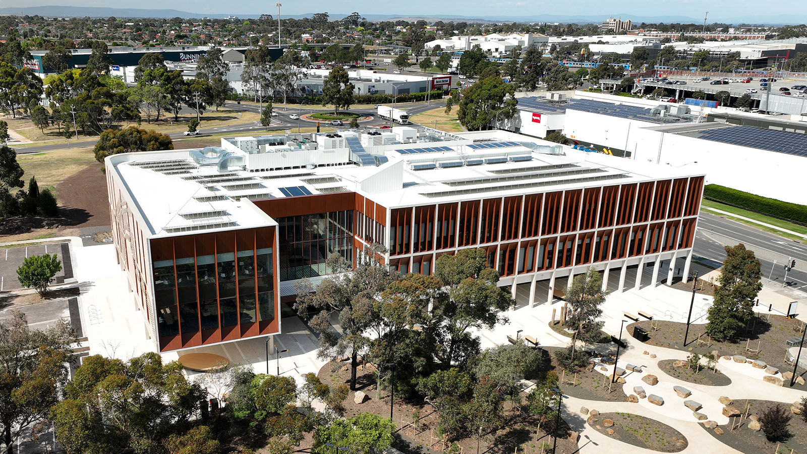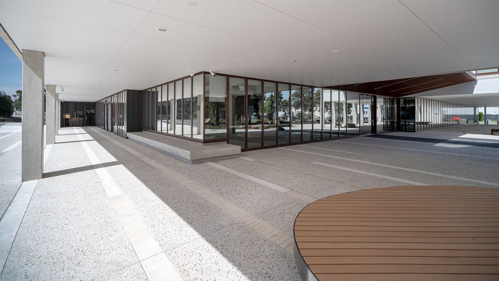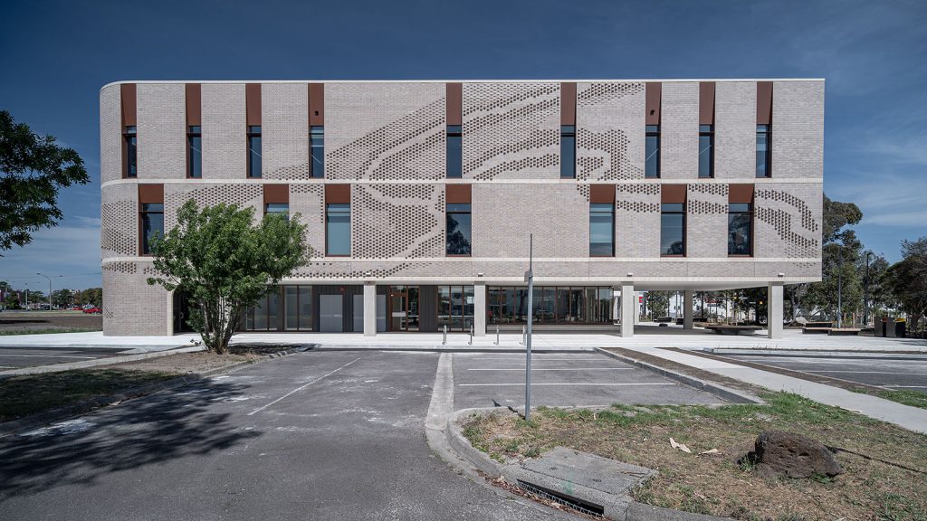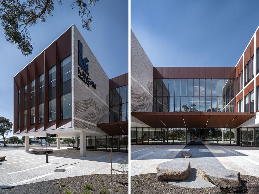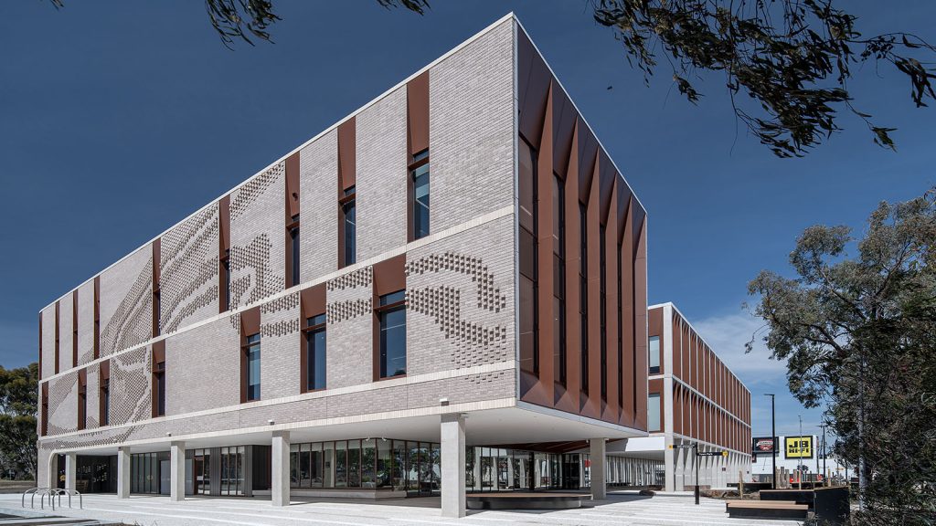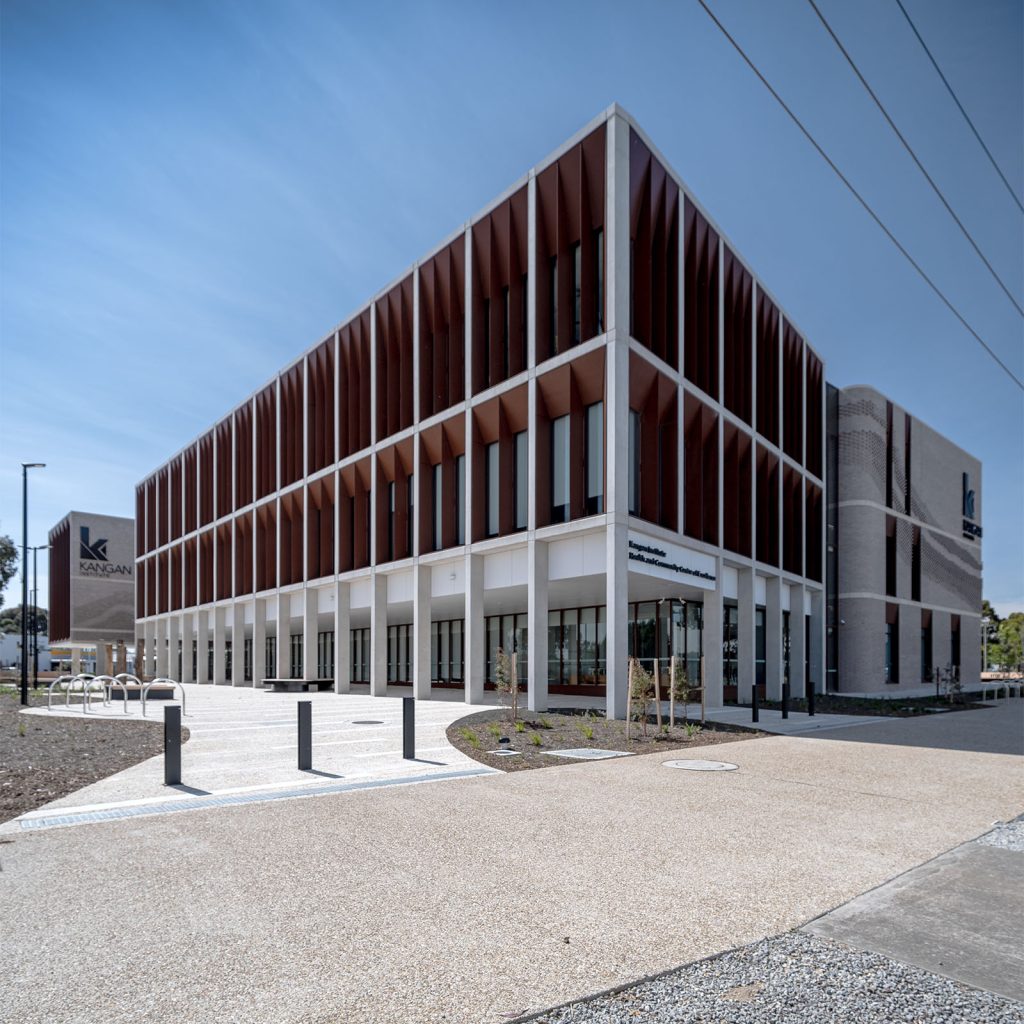 The Corten look is a distinctive ‘weathered steel’ coating which is seen featured on the façade of Kangan Institute. Designed to withstand the elements, it comes with a 25-year warranty unlike natural Corten which can leach and stain surrounding surfaces.